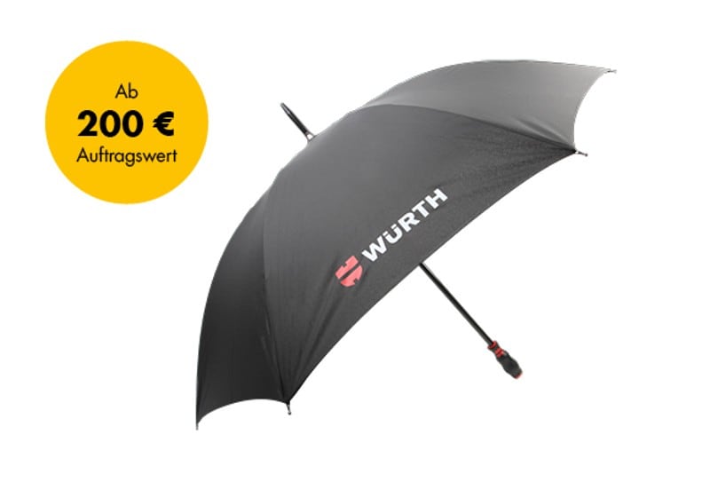 Aprilwetter? Damit sind Sie vorbereitet! Sichern Sie sich jetzt den Würth Stockschirm gratis.