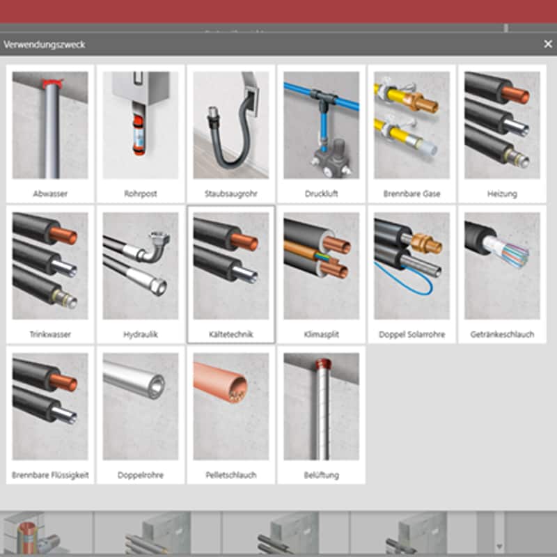 Dazu gehören das zu durchdringende Bauteil sowie die Rohrleitungen und Kabel, die abgeschottet werden sollen.