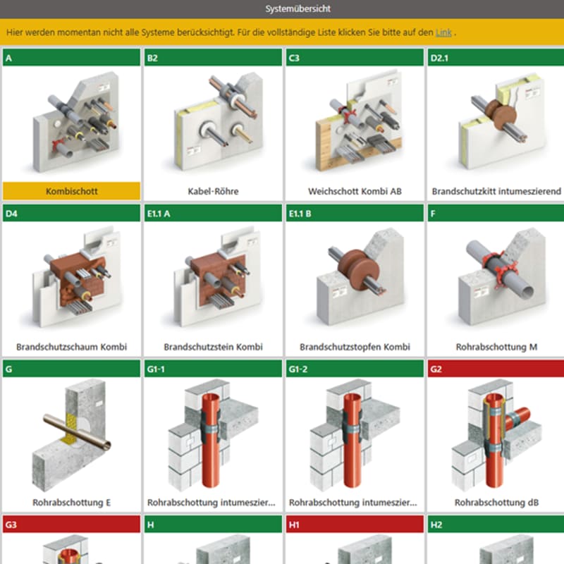 In der Systemübersicht wählen Sie das passende Würth Brandschutzsystem aus.