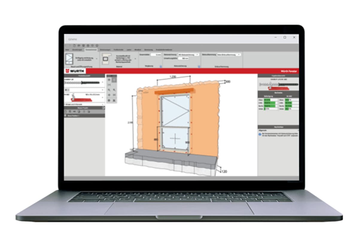 Mit der Würth Fenstersoftware lassen sich Befestigungen schnell und präzise berechnen – eine wichtige Grundlage für eine fachgerechte, schadensfreie Montage, auch bei modernen Wandbaustoffen oder absturzsichernden Fensterelementen.