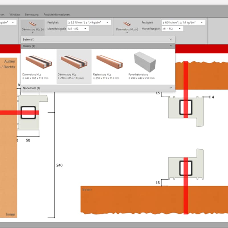 Die zugehörige abZ/aBG des jeweiligen Befestigungsmittels ist in der Software hinterlegt.