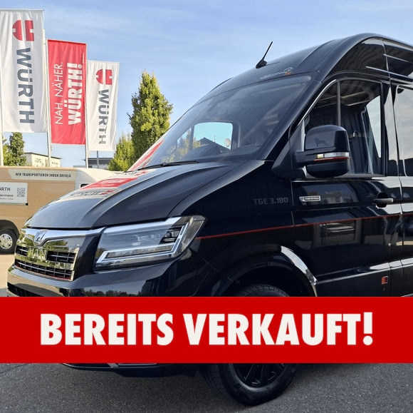 Bereits verkauft – Messe Vorführfahrzeug MAN TGE Individual Lion-S. mit Vollausstattung und WÜRTH-Fahrzeugeinrichtung im Wert von 12.500 € netto