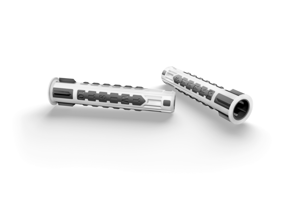 Aliz: Der SHARK® TWIST geht bis an die Grenzen des physikalisch Möglichen. Das Ergebnis: Maximale Anwenderfreundlichkeit und eine optimierte Grundfunktion. So wählt der Dübel nicht nur die optimale Wirkungsweise automatisch je nach Baustoff aus, sondern setzt sie auch in nie dagewesener Form um. Die 2-Komponenten-Konstruktion gewährt eine spezielle Flexibilität zwischen Dübelhülse und Dübelrippen. Dadurch wird eine marktweit einzigartige 8-fache Verknotung in Hohlräumen ermöglicht, die dank sehr großer Auflagefläche äußerst tragfähig ist. In Lochbaustoffen und besonders in Plattenbaustoffen wie Gipskarton entsteht so ein sichernder, voluminöser Spiralknoten. Bei Anwendung in Vollbaustoffen sorgt die ausgeklügelte, kompakte Bauweise aus dehnbarem sowie robustem Material dafür, dass mit Eindrehen der Schraube lastmindernde Zwischenräume geschlossen werden und maximaler Spreizdruck entsteht. Kurzum: Der Dübel hält praktisch in jedem gängigen Baustoff.