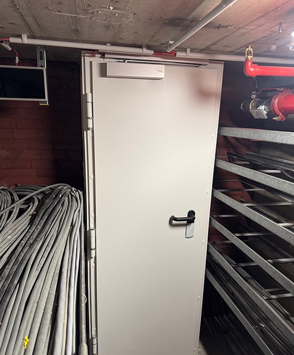 Herr Zepf: Unser Auftrag beinhaltete das Entfernen der alten Mineralwoll-Abschottungen, das Herstellen neuer Abschottungen mittels Brandschutzstein, -schaum und -masse, sowie das Errichten von Wänden für die neuen Brandschutztüren und der Einbau neuer Brandschutztüren mit Obertürschließern und Ansteuerungsmöglichkeit über die Brandmeldeanlage (BMA).