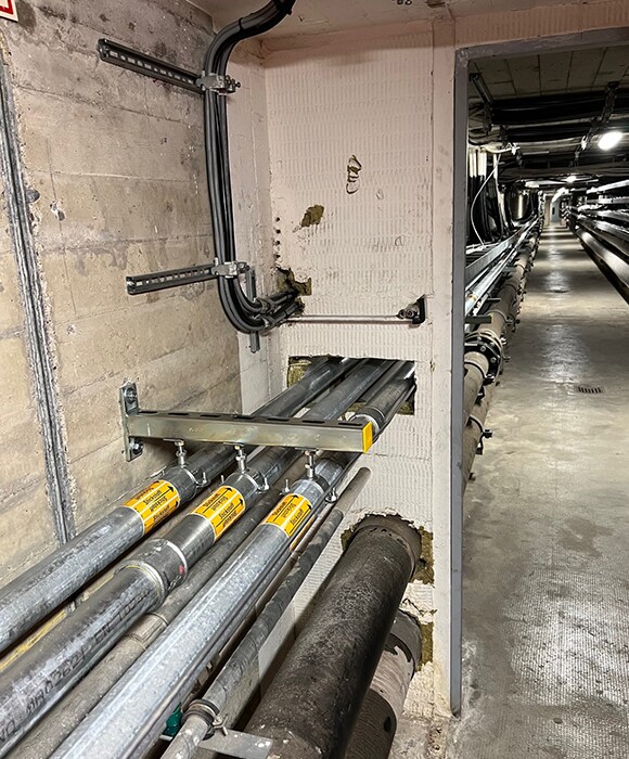 Herr Zepf: Herausfordernd war der beschränkte Raum innerhalb der Versorgungskanäle. Die Kabelkanäle mit einer Breite von lediglich rund zwei Metern wurden beidseitig mit bis zu zehn Kabelpritschen übereinander versehen und die Durchgangsbreite teilweise auf 70 Zentimeter reduziert. Erschwerend kam hinzu, dass auch Brandschutztüren dazwischen einzubauen waren.